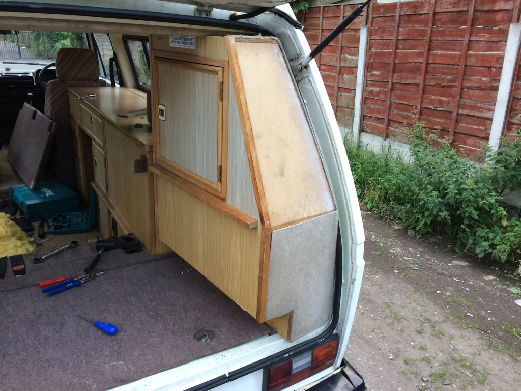 Working the unit backwards out of the van