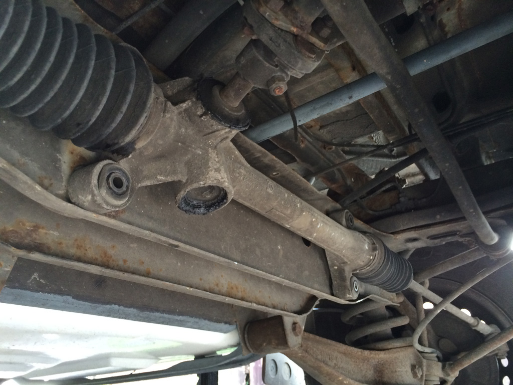 Steering rack with bolts removed